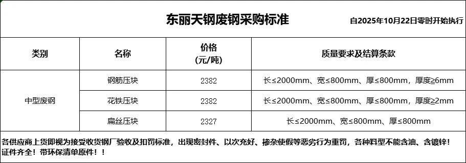 天鋼聯(lián)合**月**日開始執(zhí)行,鋼筋壓塊****,花鐵壓塊****,邊絲壓塊****,打包帶壓塊****,鋼筋切頭****,沖豆停收