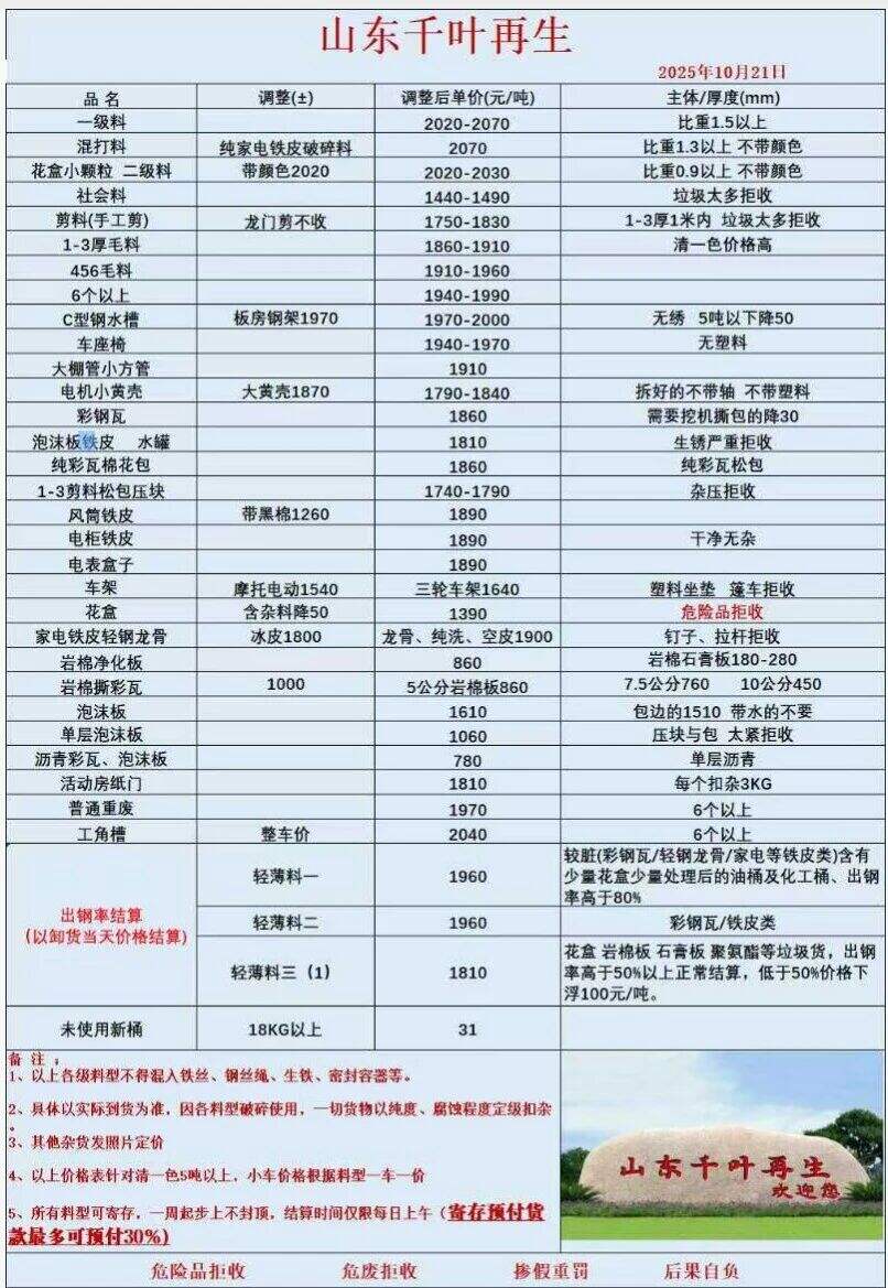 ****年**月**日山東千葉再生(臨沂郯城)報(bào)價(jià):