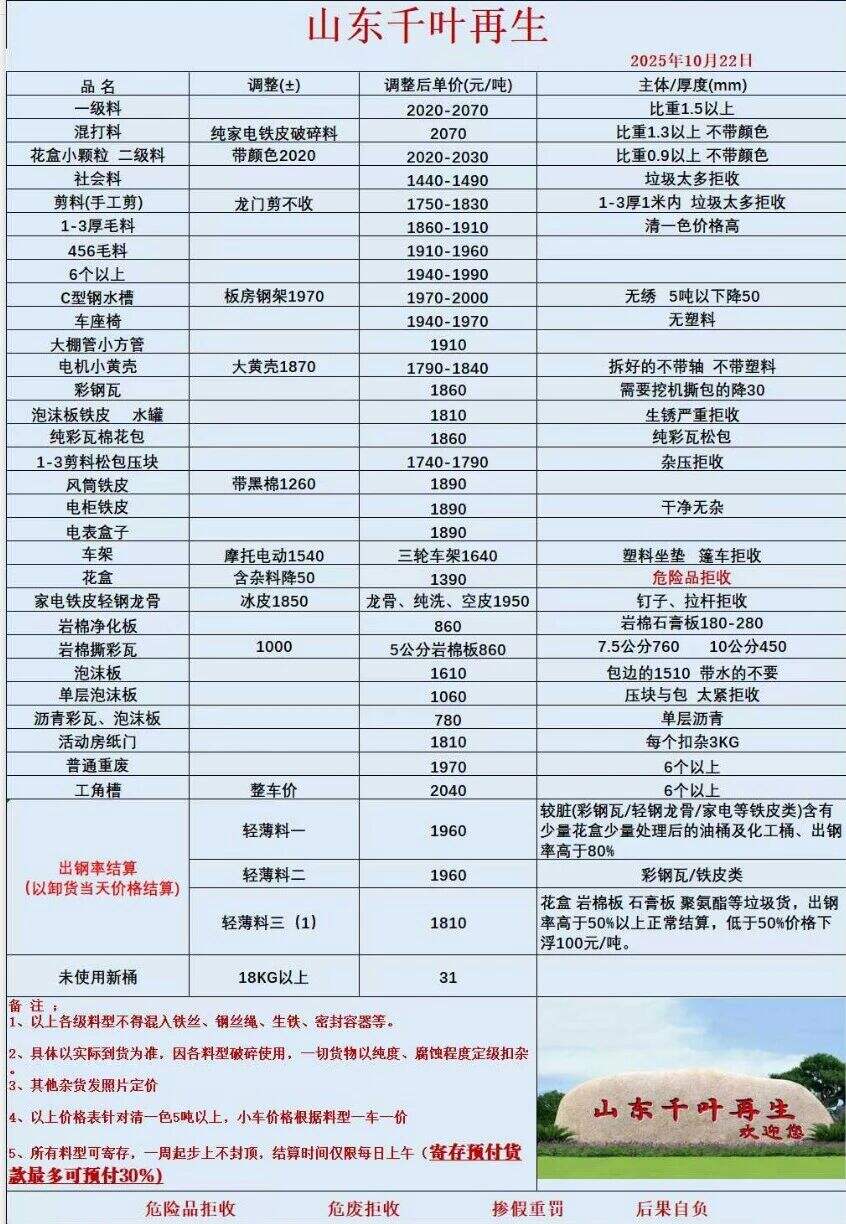 ****年**月**日山東千葉再生報(bào)價(jià)