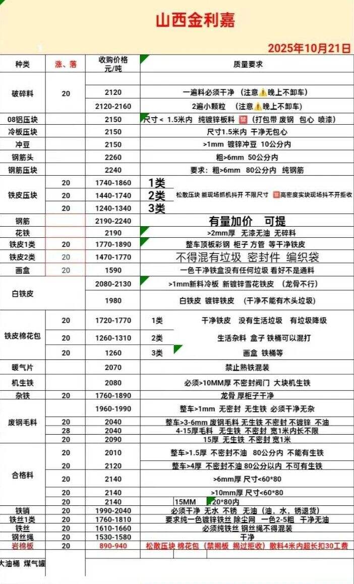 ****年*月**日山西金利嘉廢鋼報(bào)價(jià)