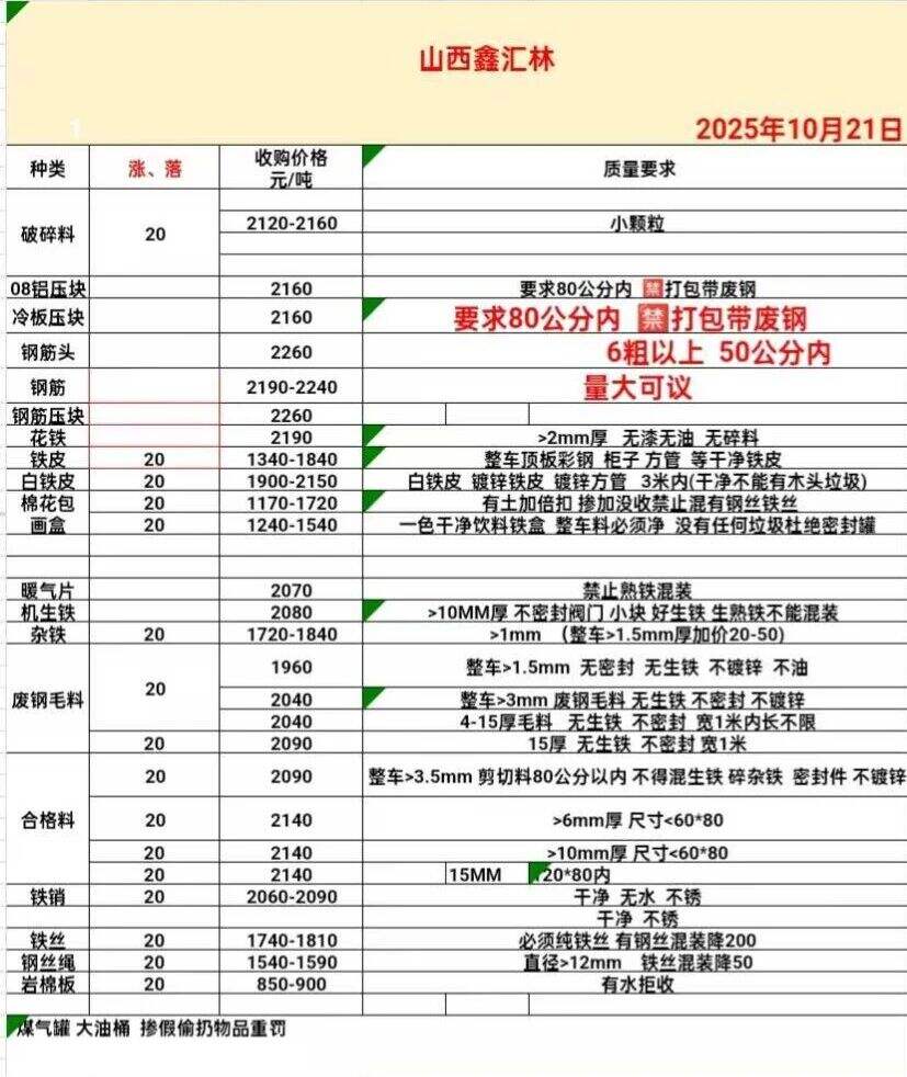 ****年*月*日山西鑫匯林廢鋼報(bào)價(jià)