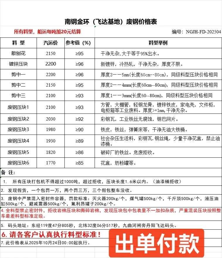****年**月**日南鋼金環(huán)(飛達(dá)基地)廢鋼價(jià)格表