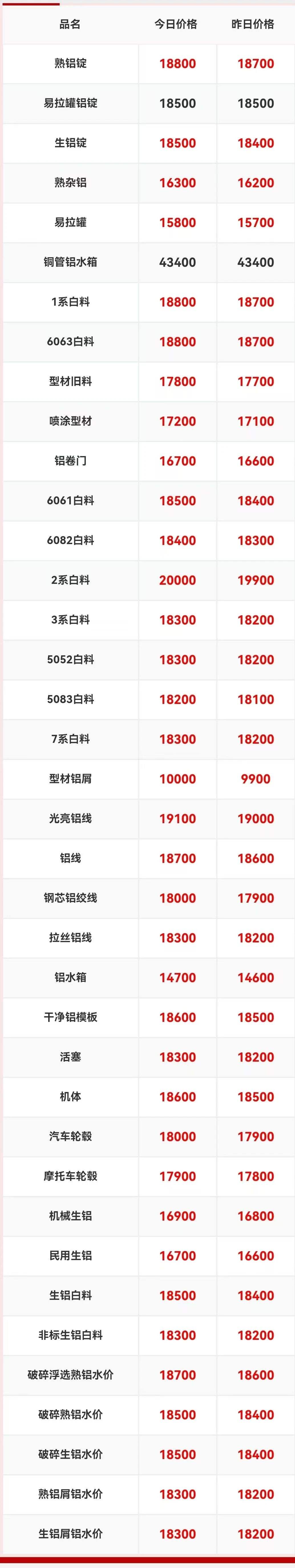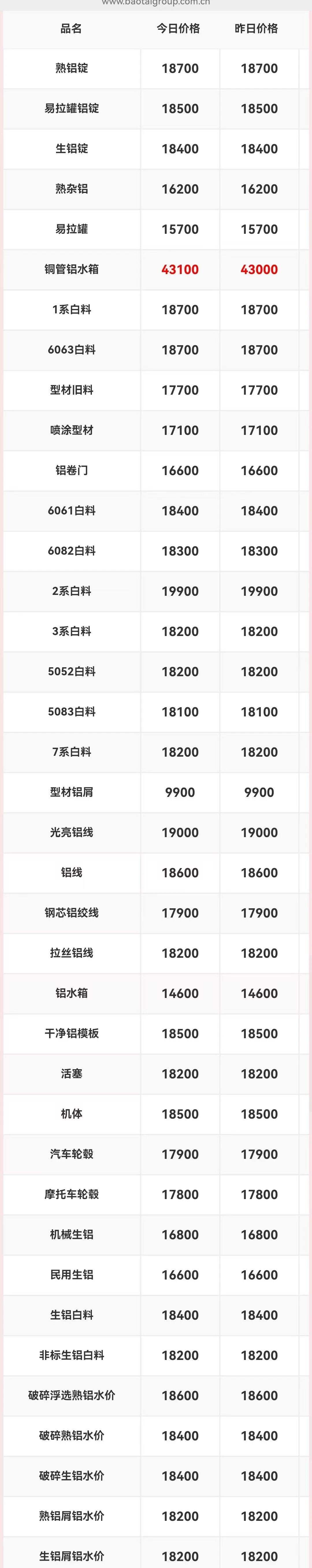 ****年**月**日江西保太有色金屬集團有限公司廢鋁報價