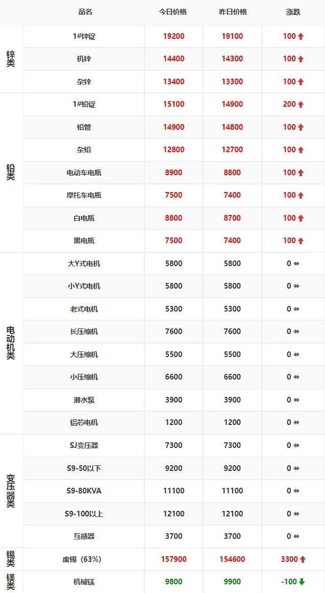 ****年**月**日江西保太有色金屬集團有限公司鉛鋅、電機報價