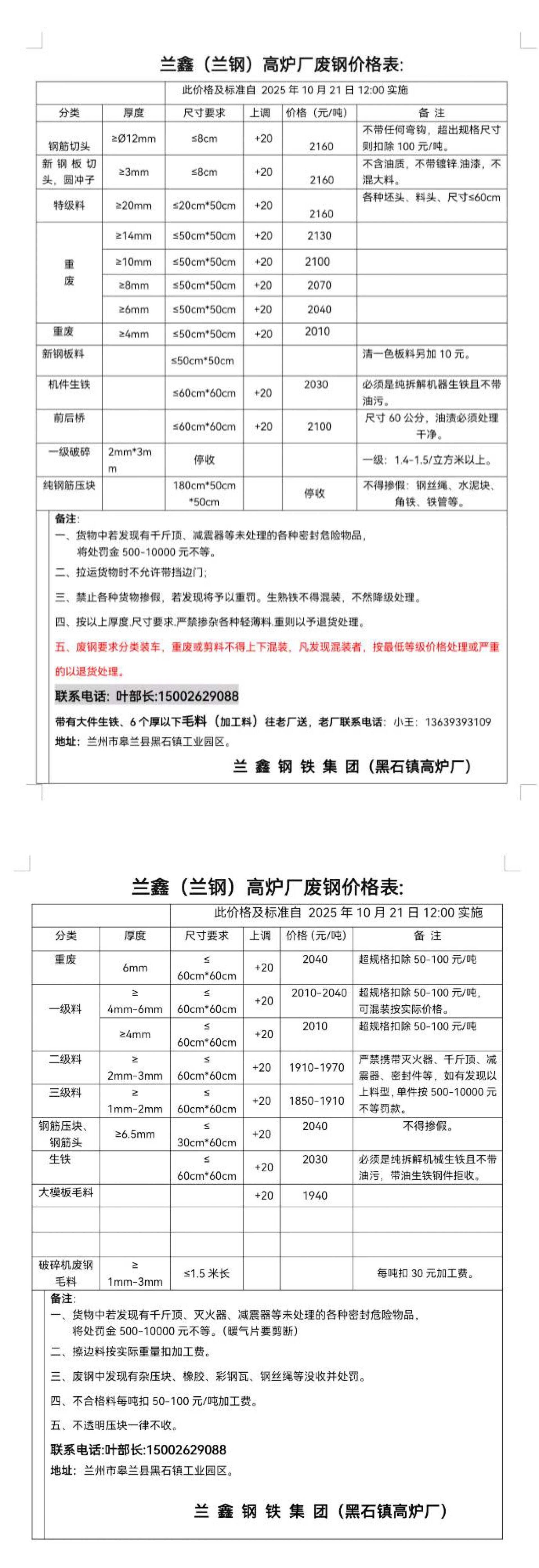 蘭鑫*月**日*:**重廢、剪料價格上調(diào)**元/噸。