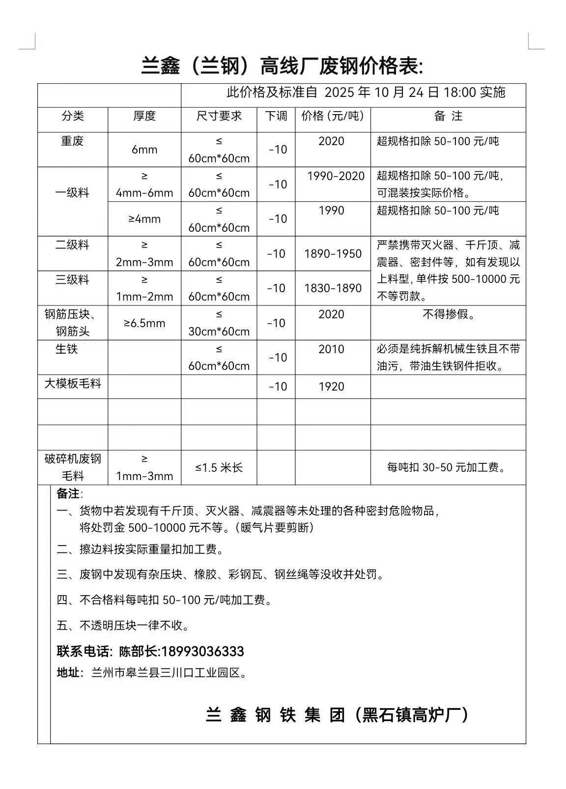 蘭州蘭鑫*月**日**:**重廢、剪料價格下調(diào)**元/噸。
