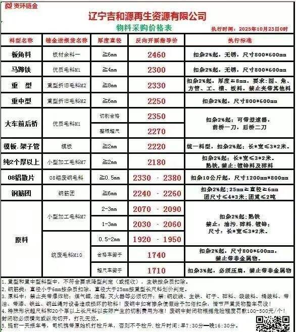 ****年**月**日遼寧海創(chuàng)豐程再生資源有限公司報價: