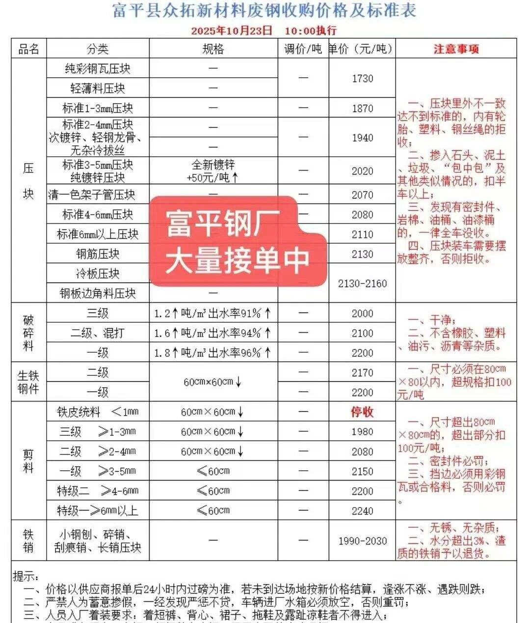 ****年**月**日陜西富平縣眾拓新材料制造有限公司廢鋼收購價格下調(diào)**-**元
